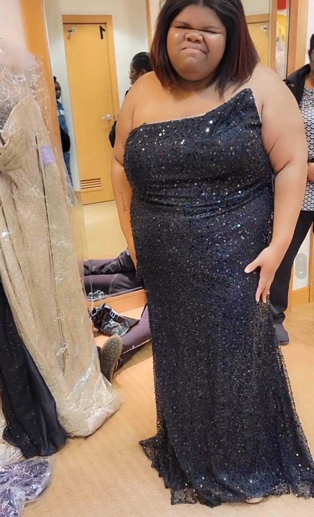 They, along with two of Elyse's aunts and her grandmother, drove 6 hours away to a boutique store that Elyse had found on TikTok. Named Juicy Body Goddess, they cater to "curvy & plus size" clientele who might struggle to find dresses (and other fashion) that fit them elsewhere.
