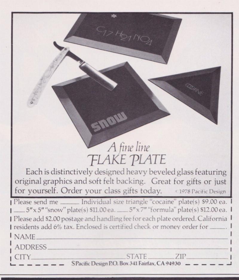 Before it was rendered illegal, the sale of drug paraphernalia was big business. These vintage commercials show luxurious black sofas, sexy women, and lots of cocaine. These ads ran from ’76 to ’81.