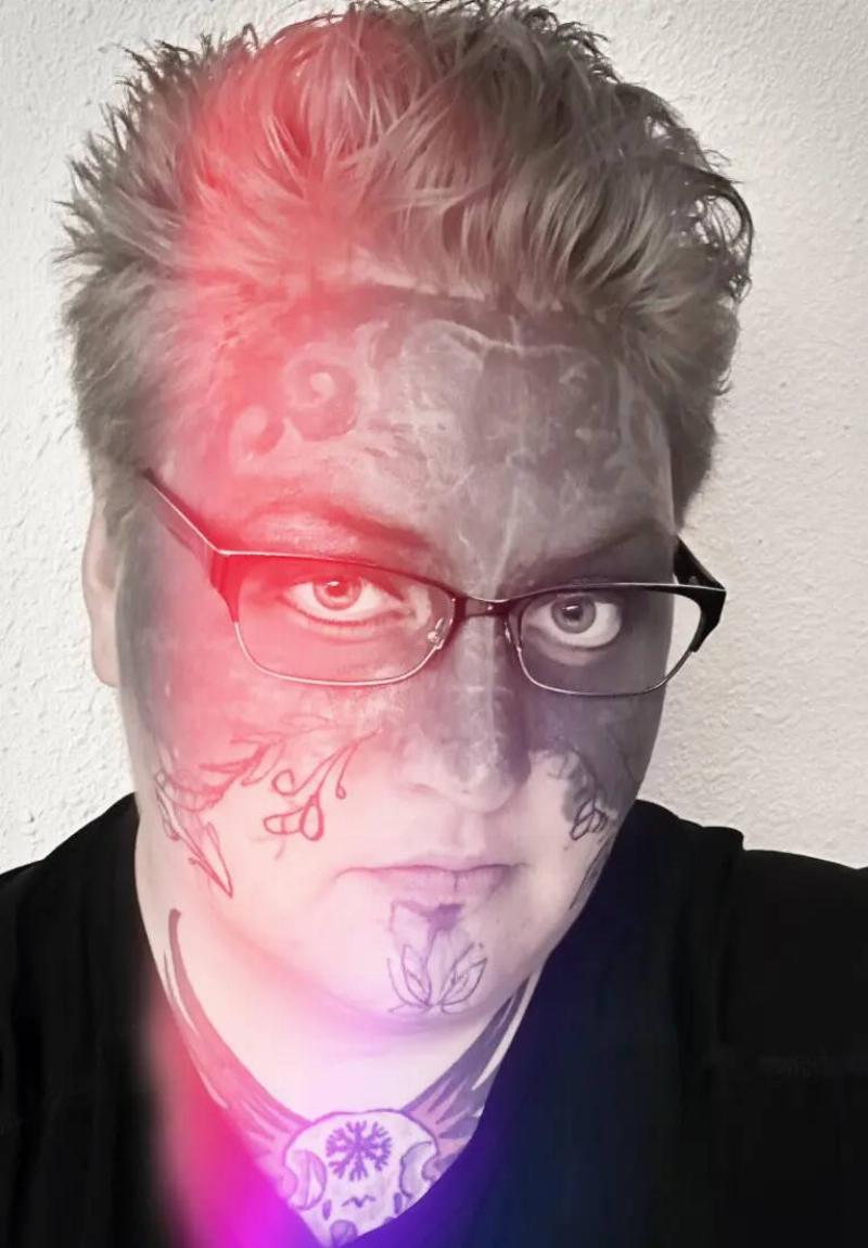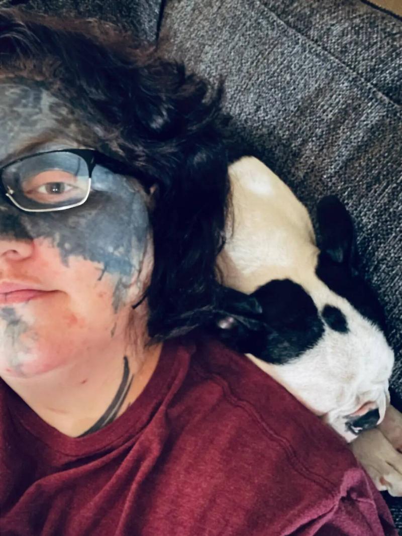 She agreed to his proposal and let him tattoo the entire upper half of her face black, covering up the obscenities that had been forced upon her.